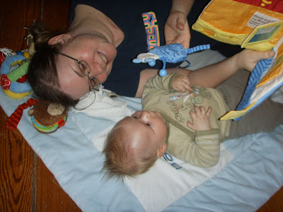 Des Bunkels neues Buch lässt ihn bei Betrachtung durchdrehen, auch wenn es hier garnicht so aussieht. Scheinbar sind grosse, gelbe, plüschige Bücher ein Überreiz für kleine Bunkelse. Alleine schon der Versuch, so einen dicken Stoffwälzer in den Mund zu stopfen verursacht massive Adrenalinschübe. Und dann erst die Maus. Und die Katze. Kann sicherheitshalber vorerst nur für kurze Zeit unter elterlicher Aufsicht genossen werden.